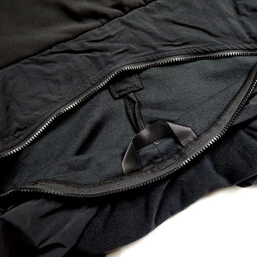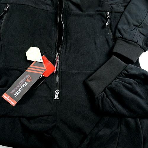 POLARTEC(ポーラテック)社で以前から親しまれているフリース生地を使用しています。軽量で通気性、保温性が優れた高性能素材で、非常に柔らかで肌触りが良く、最適な着心地です。 背中部分は、伸縮性のある生地を使用し、オールインワンでも動きにストレスなく、着用いただけます。裏地は厚みのある起毛素材で空気の層を作り、暖かい空気を保ちます。